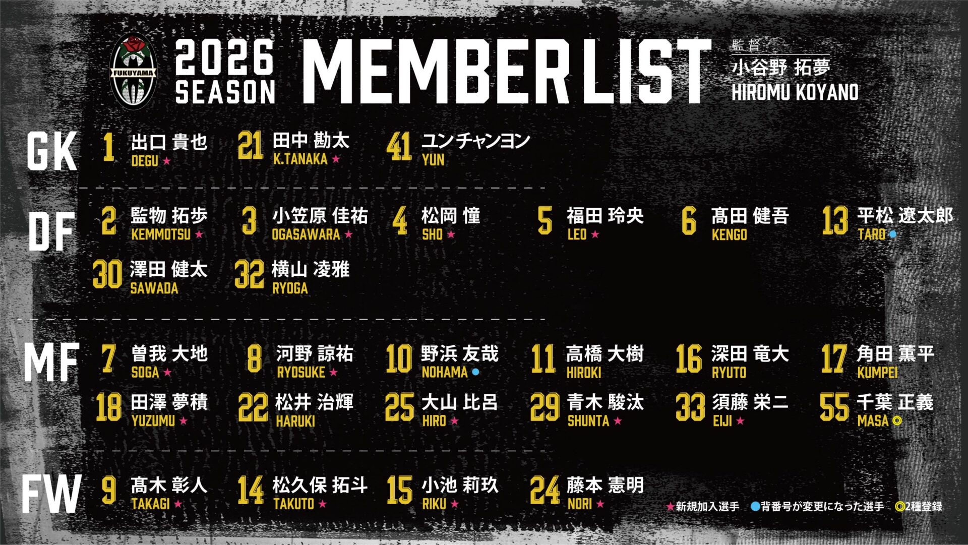 ・ / 2026シーズン🌹 選手の背番号&