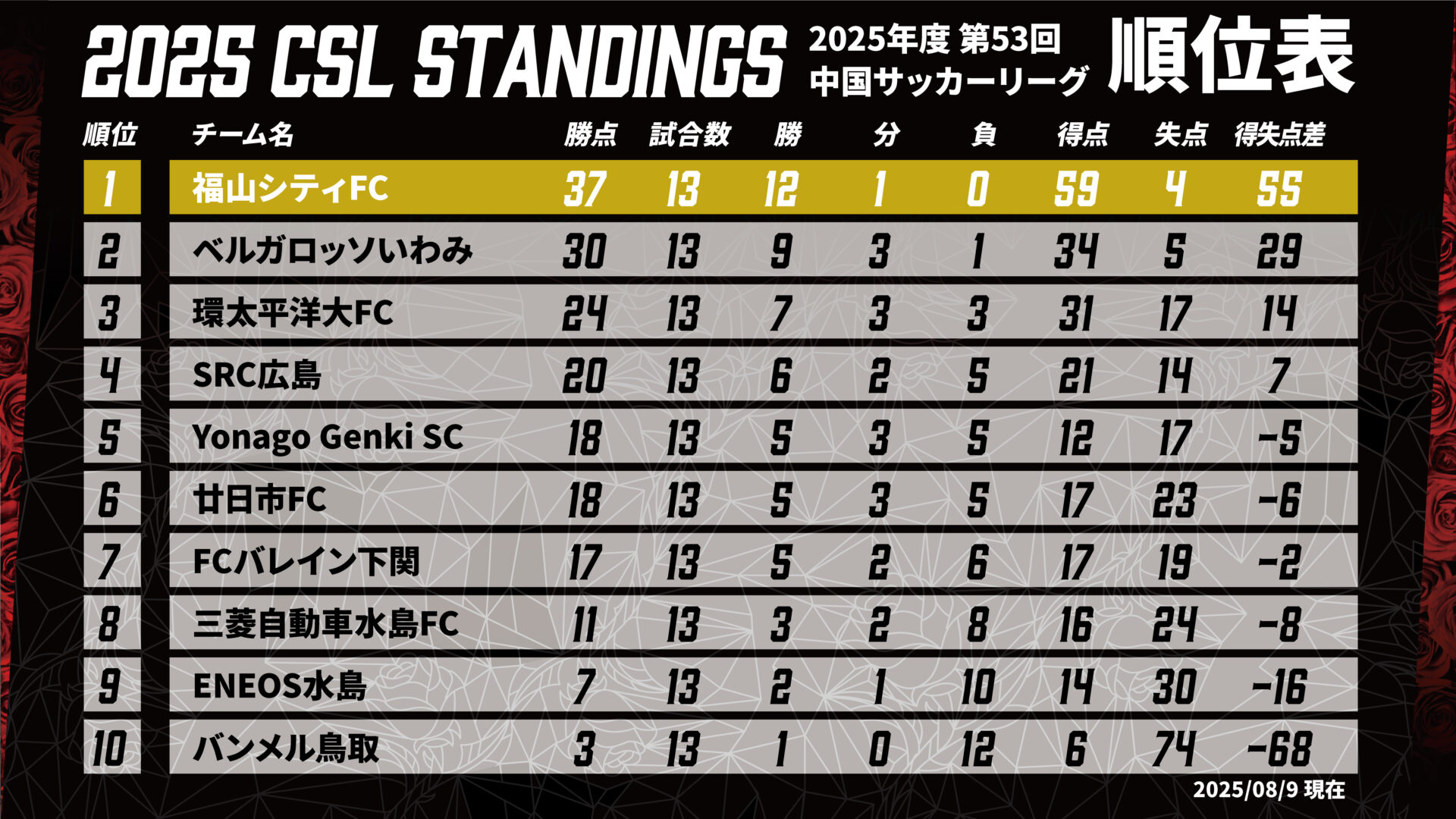 リーグ戦順位表2025