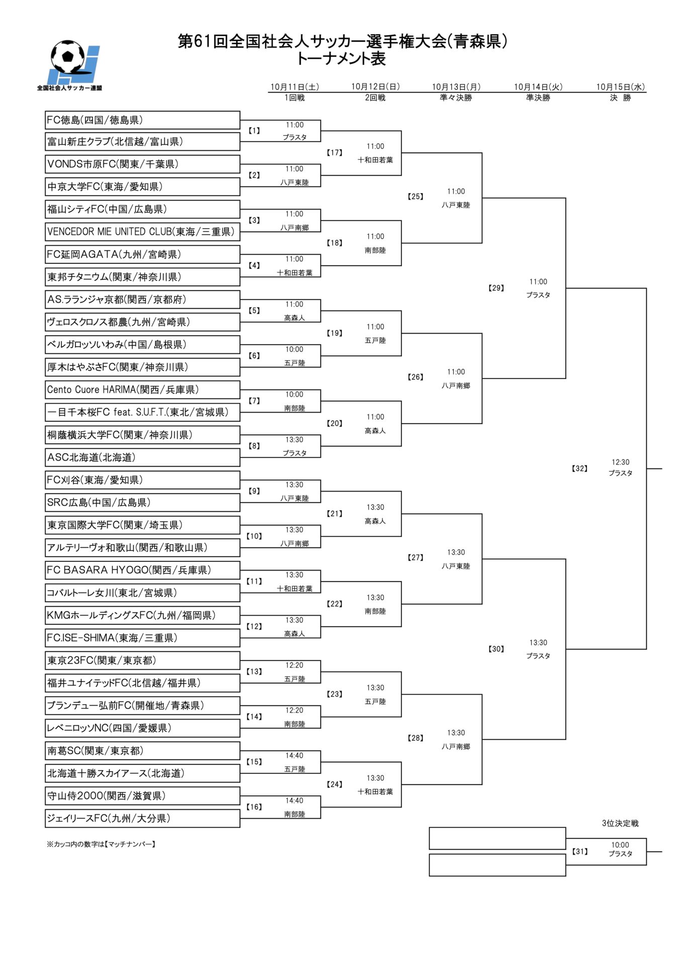 【組み合わせ】◆第61回全国社会人サッカー選手権大会