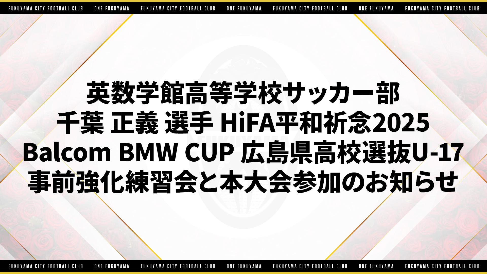 【リリース】英数学館高等学校サッカー部 千葉 正義 選手 HiFA平和祈念2025 Balcom BMW CUP 広島県高校選抜U-17 事前強化練習会と本大会参加のお知らせ