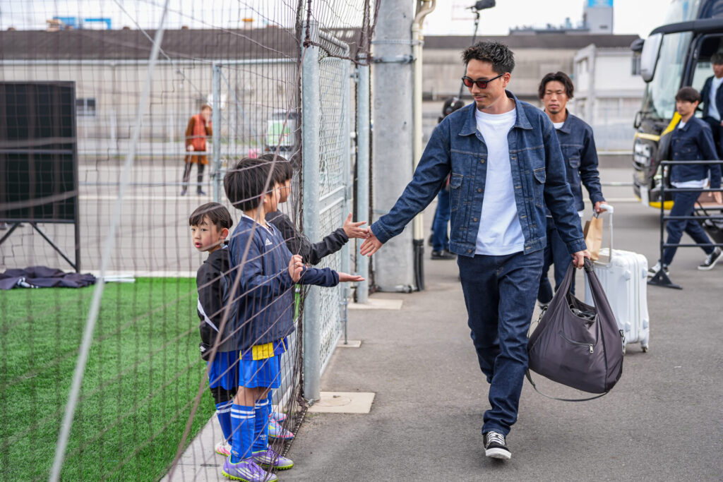 既に販売中の福山シティFCオリジナルジーンズ【Athlete Model】と同じ福山デニム生地を使用しており、セットアップでの着用もおすすめです。