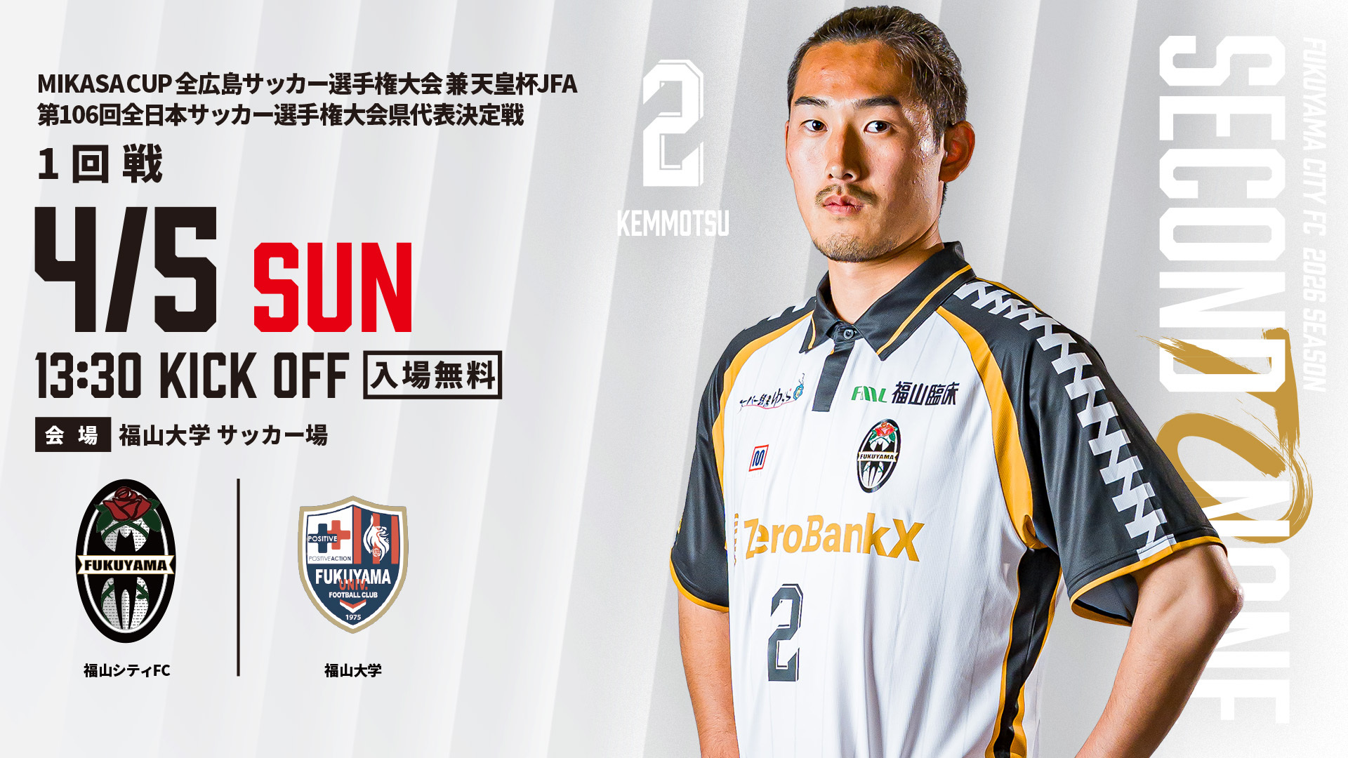4月5日(日)に行われます、「MIKASA CUP 全広島サッカー選手権大会 兼 天皇杯JFA 第106回全日本サッカー選手権大会県代表決定戦 1回戦」の試合情報について、下記のとおりお知らせいたします。