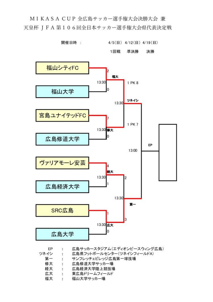 【リリース】MIKASA CUP 全広島サッカー選手権大会 兼 天皇杯JFA 第106回全日本サッカー選手権大会県代表決定戦 決勝 vsSRC広島