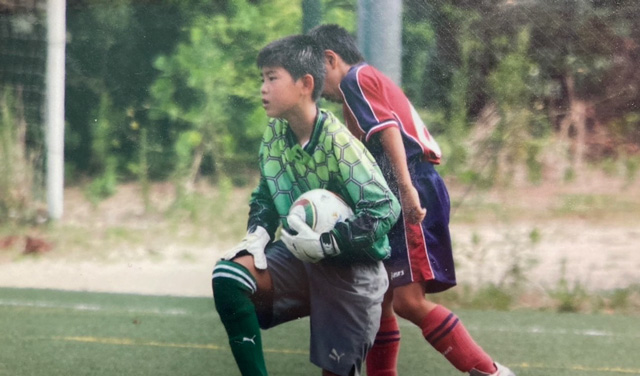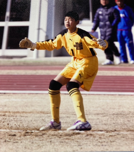 サッカーを始めてからは毎日ボールを蹴ったりリフティングの練習をしたりとボールを触らない日はなかった。小学生の時はキーパーで、地元では強いチームに入団していたので、五年生の時に控えだったが全国大会に参加することができた。しかし、控えキーパーだったので試合に出場することは出来なかった。その時の悔しい思いから勝つこと、試合に出場することへの気持ちが強くなり中学生では、中学校のサッカー部とクラブチームの掛け持ちで入団し、キャプテンもすることができた。